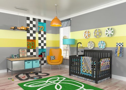Read more 10PC RACE CAR NURSERY CRIB BOY BEDDING BLUE ORANGE YELLOW
