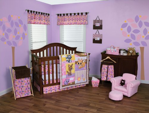 Discover the beautiful wilderness with Lola Fox! Trend Lab's Lola Fox and Friends 3-Piece Crib Bedding Set features Lola Fox with her adorable baby woodland friends interacting in a delightful patch-like scene. Decorative quilting stitches add a gorgeous flair, bringing the cute little critters to life, while a variegated stripe frame and chocolate trim add detail and dimension to this adorable group. Dress up your nursery with beautiful prints and endearing characters featured in a fashionable color palette of bubblegum and hot pink, violet, caramel, cantaloupe and buttercup, with cinnamon, oak and slate accents.