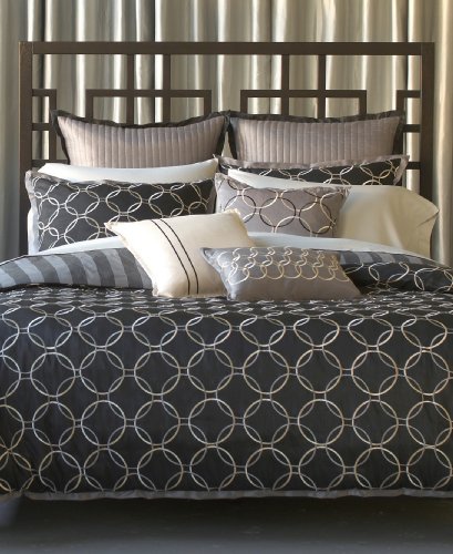 Undeniably modern, the Bryan Keith Portland reversible comforter set offers two sophisticated patterns for a multitude of mix and match possibilities. One side of the comforter and shams feature bold stripes while the other boasts interlocking rings. Ribbed European shams and striking decorative pillows finish the look in style.