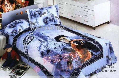 Three piece Harry Potter bedding set includes duvet cover, 1 flat sheet, 1 pillow sham. Soft blue-on-blue design showcases Harry as Seeker for the Gryffindor Quidditch team in front of Hogwarts castle with Hedwig flying above. 100% cotton, super soft 400 thread count. Flat sheet, which can be used as a bottom sheet for all US, UK, Asian or European variously sized twin mattresses, measures: 150 x 200 cm (59 x 79 inches). Duvet cover measures: 150 x 200 cm (59 x 79 inches). Pillow sham measures: 48 x 75 cm (19 x 30 inches) Care instructions: Machine washable warm water, tumble dry low heat. Note: Photo illustrates pattern design and colors of duvet set. This is a 3 piece twin set and includes only one pillow case/sham.