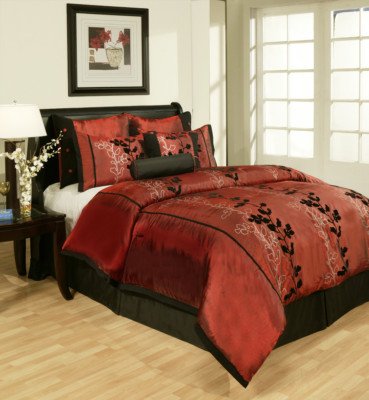 Read more Laurel 8 Piece Queen Deep Red W/Black Silver Vine Leaf Bedding Comforter Set