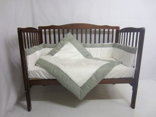 A crib bedding set that is sure to catch the eye. Our Zuma crib bedding is made of a combination of seafoam and white suede look fabric. A fantastic combination that is as comfortable as it is unique. A beautiful comforter, coordinating bumper and fitted sheet make the set complete. A magnificent display of color and contrast.