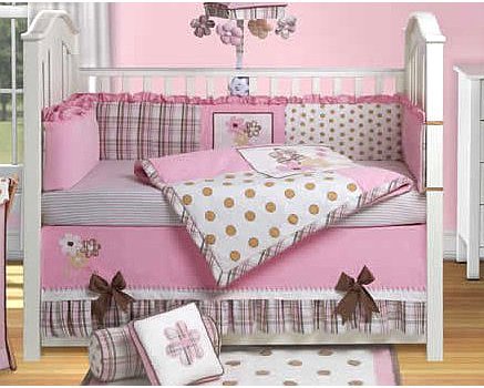 Pretty shades of pink accented with gentle brown tones will delight you and your little one. A combination of dots, plaid and daisies make the Baby Grace 4-Piece Crib Bedding Set by Bananafish a sweet choice for your nursery.