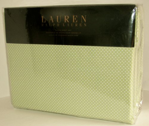 Read more Lauren Ralph Lauren Sheet Set Queen Sateen Fresh Spring Green with small White Polka Dots
