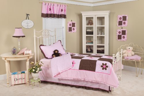 The company was founded on the core belief that combining style, convenience and affordability allows all parents to create a dream nursery. Pam's petals twin bedding set gives your big girl the room she has always dreamed of. Three piece set includes a comforter, bed skirt and pillow sham. Quilted comforter for quality. Machine washable.